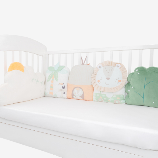 El set de cojines de peluche para cuna Jungle King combina comodidad, diseño divertido y practicidad, convirtiéndose en una opción ideal para crear un ambiente cálido y acogedor en la cuna de tu bebé.