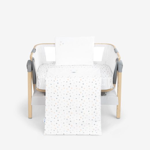 • Complete Set - Includes a pillow case (35x45 cm) with side opening, a fitted bottom sheet with elasticated details (50x80x8 cm) and a duvet case with zipper (55x85 cm).