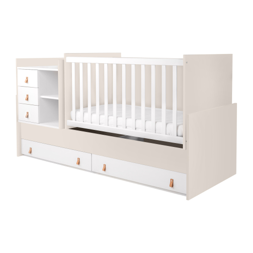 • 3 soft close drawers, shelf, dowel-chest and changing area;