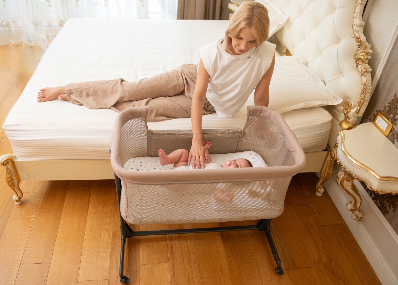 NOAH is greatly designed with a dropping front side for quick access and includes a soft mattress pad to keep your baby comfortable. Its design features lockable wheels for easy positioning and stability, making it a practical and secure choice for any nursery, while ensuring that your baby remains close and safe within reach all night.