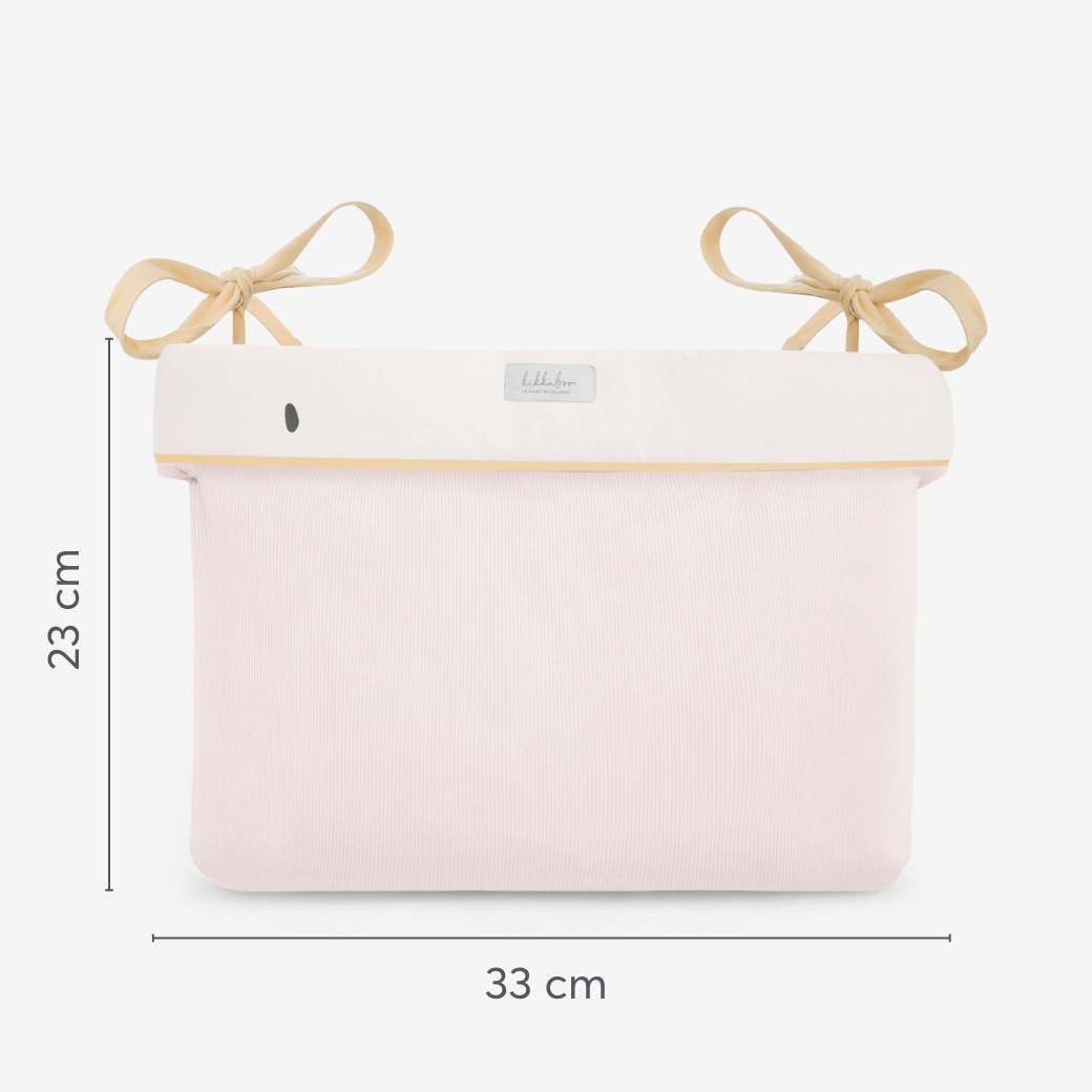 The HEDGE-HUGS Diaper Basket with Ties is a charming and practical addition to any nursery, designed to keep diapers and essentials organized and within reach. It is crafted soft cotton material with playful patterns and embroidery to be both practical and stylish.