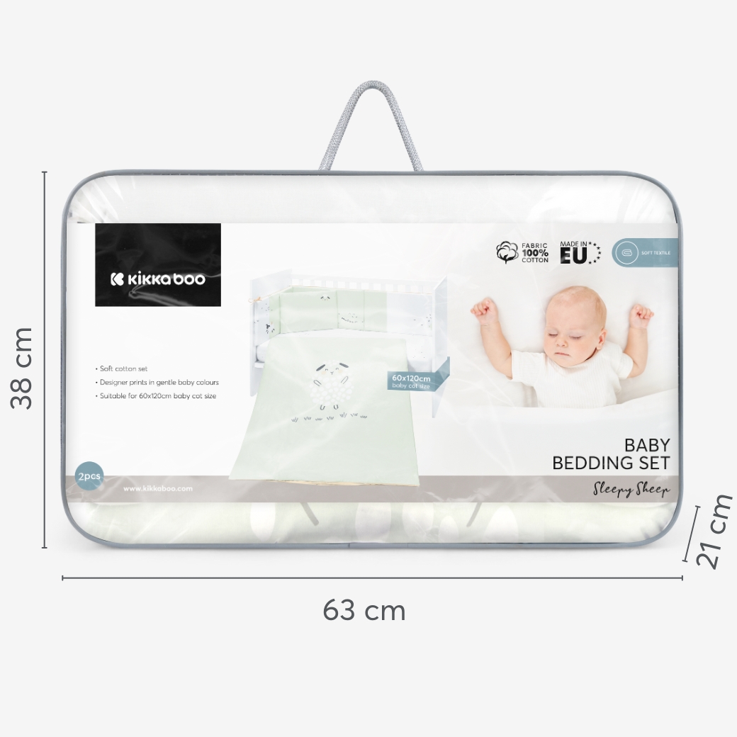 The SLEEPY SHEEP Bedding Set 2pcs EU style provides a soft and stylish sleep solution for your baby’s cot, crafted from premium 100% ranforce cotton for exceptional comfort and breathability. Designed to fit a 60x120 cm cot, this set combines cozy materials and practical design to create a peaceful sleep environment for your little one.
