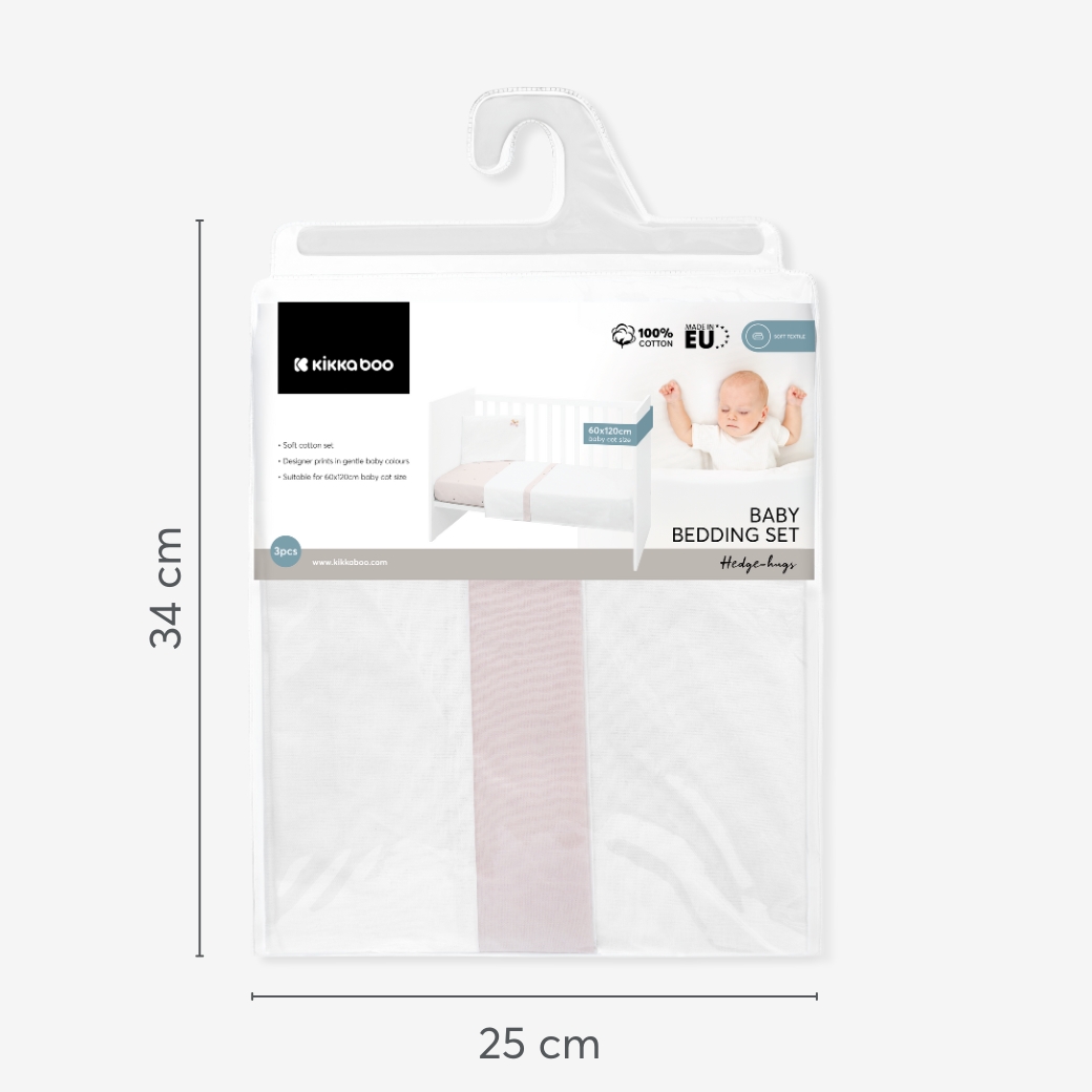 The Baby Bedding Set HEDGE-HUGS 3pcs is crafted from premium 100% ranforce cotton, bringing both comfort and charm to your baby’s nursery. Designed to fit baby cots sized 60x120 cm, it will ensure a peaceful sleep environment for your little one.
