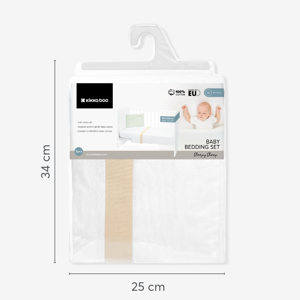 The Baby Bedding Set SLEEPY SHEEP 3pcs is crafted from premium 100% ranforce cotton, bringing both comfort and charm to your baby’s nursery. Designed to fit baby cots sized 60x120 cm, it will ensure a peaceful sleep environment for your little one.