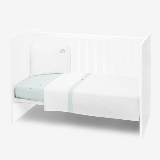 - Complete Set – Includes a pillowcase (35x45 cm) with double side opening, fitted bottom sheet with elasticated edges (60x120x15 cm), and a top sheet (100x160) perfect for use as a summer cover.