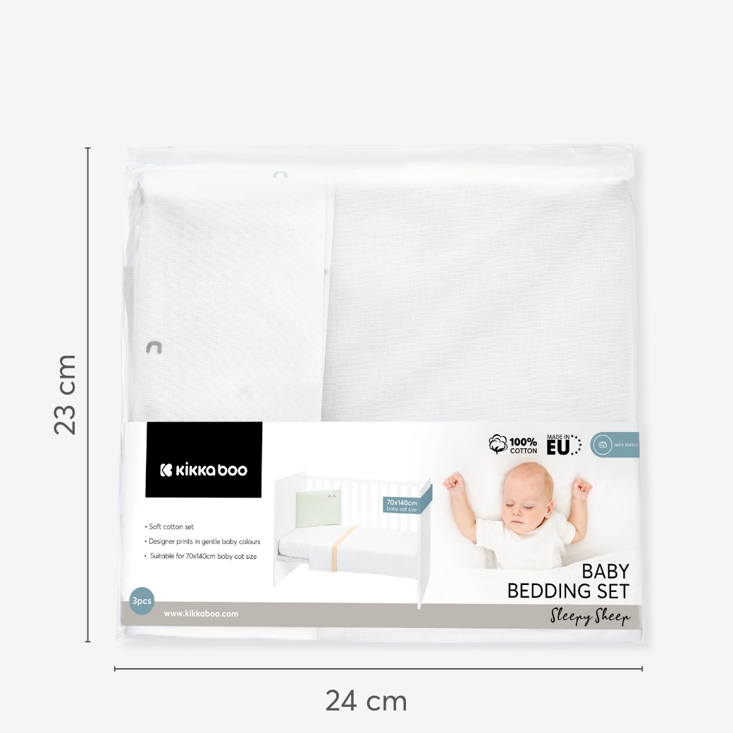 The Baby Bedding Set SLEEPY SHEEP 3pcs is crafted from premium 100% ranforce cotton, bringing both comfort and charm to your baby’s nursery. Designed to fit baby cots sized 70x140 cm, it will ensure a peaceful sleep environment for your little one.