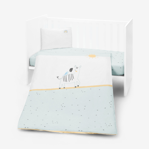- Complete Set Includes - Pillowcase (35x45 cm) with side opening, soft pillow (35x45 cm), flat bottom sheet (100x150 cm), duvet case with zipper (95x135 cm) and soft duvet (95x135 cm).