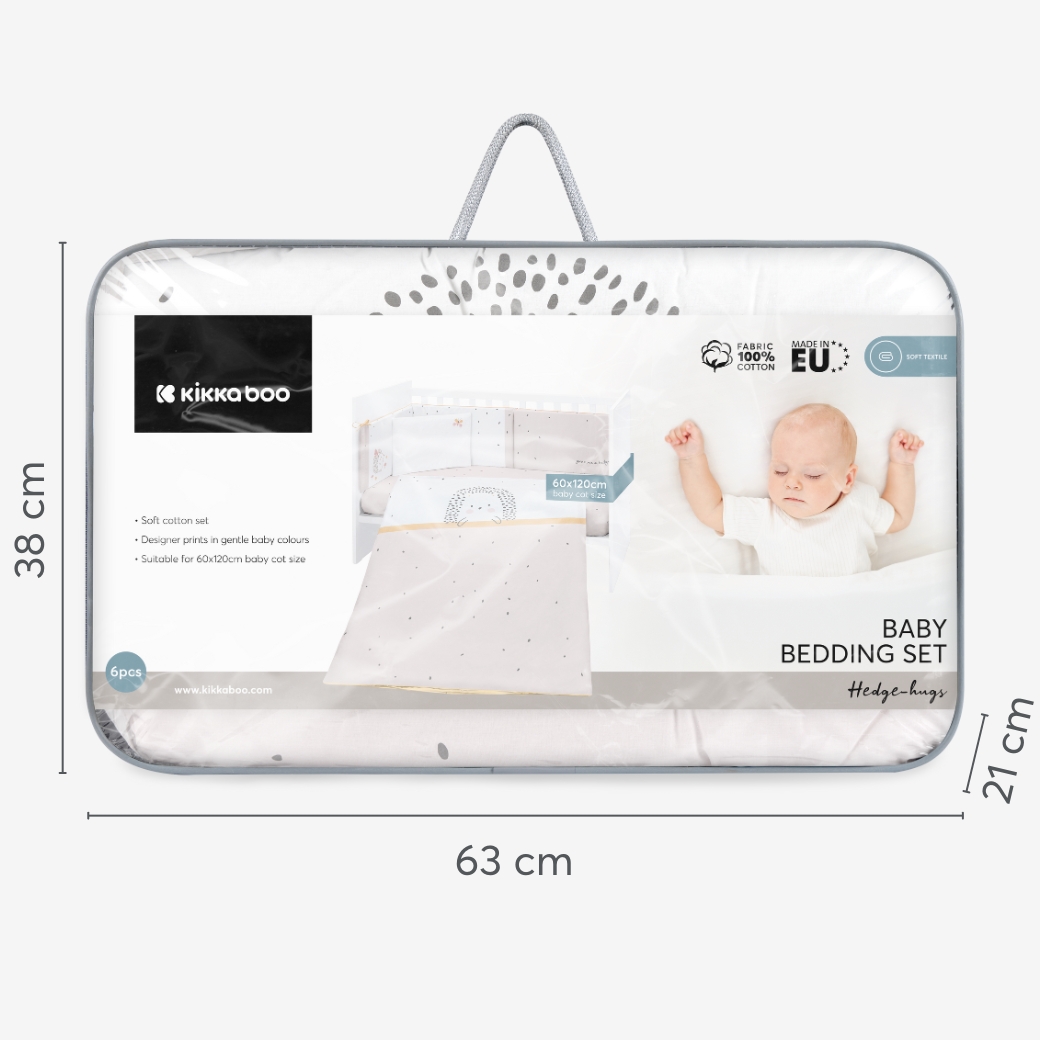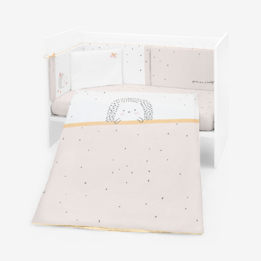 The Bedding Set 6pcs HEDGE-HUGS combines premium materials and practical design, making it a perfect choice for a cozy, stylish, and safe sleep space for your baby.
