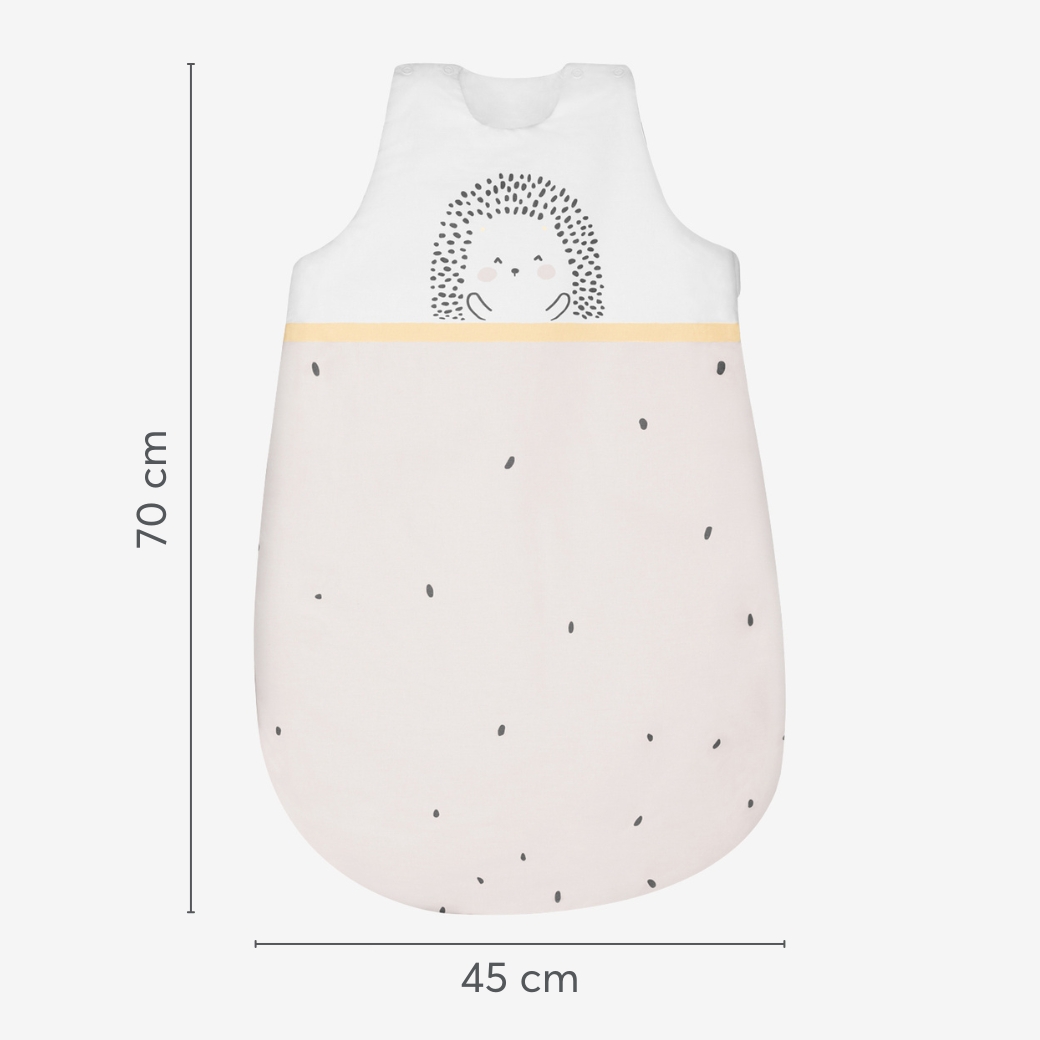 The Summer Sleeping Bag HEDGE-HUGS is the perfect lightweight solution to keep your baby comfortable during warmer nights. Crafted from premium ranforce cotton and soft cotton jersey, this gentle sleeping bag offers a cozy, breathable sleep environment, while its playful design adds charm to your nursery.
