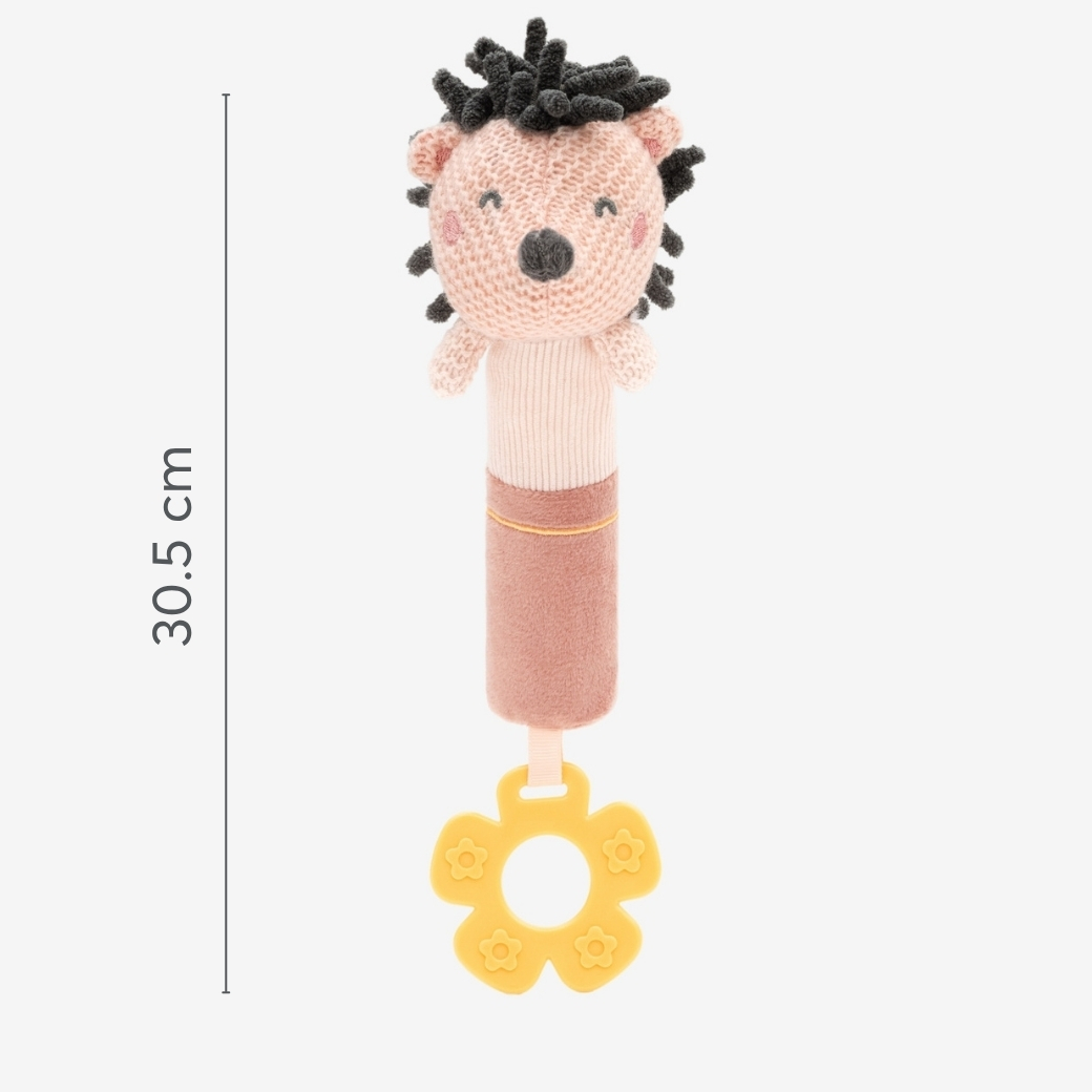 Squeaker toy with teether HEDGE-HUGS is a delightful sensory toy designed to entertain and comfort your baby. With its soft plush texture and engaging features, it provides endless fun while supporting early development.