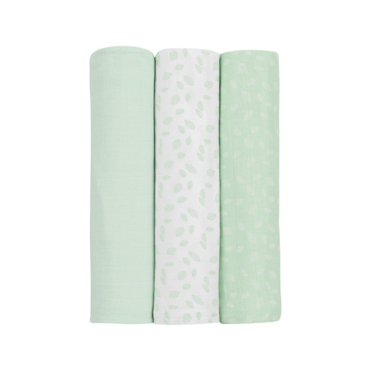 Muslin swaddle set 3 pcs 100x100 cm Leaves Mint