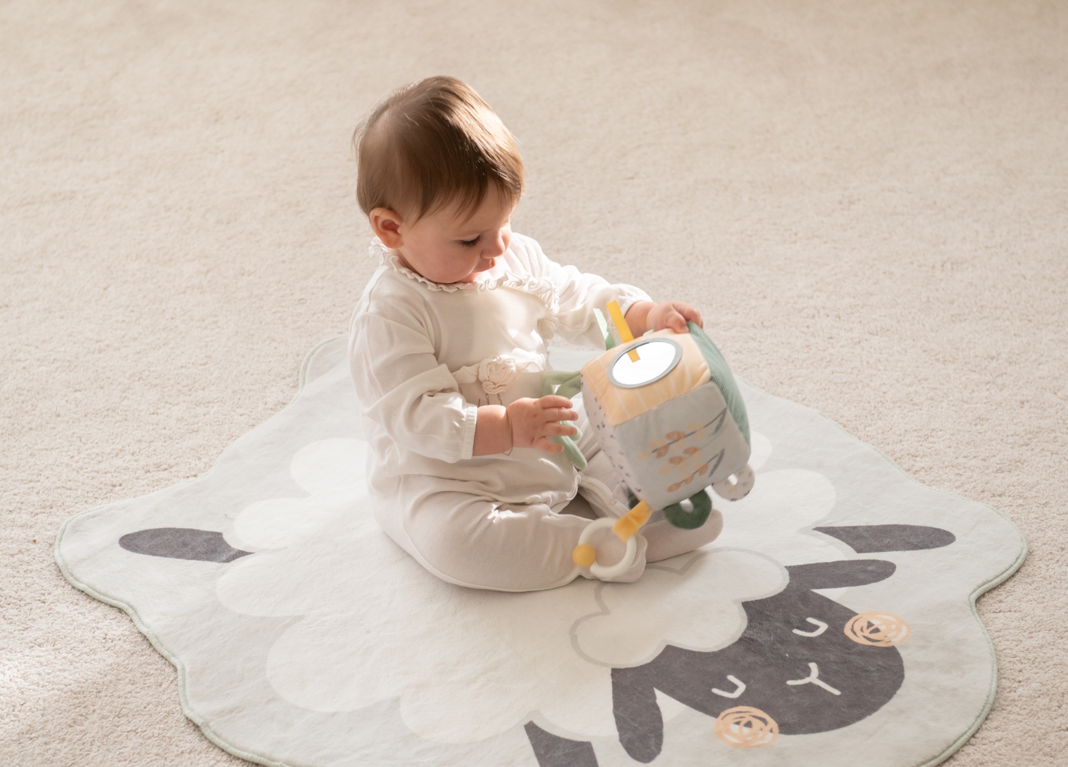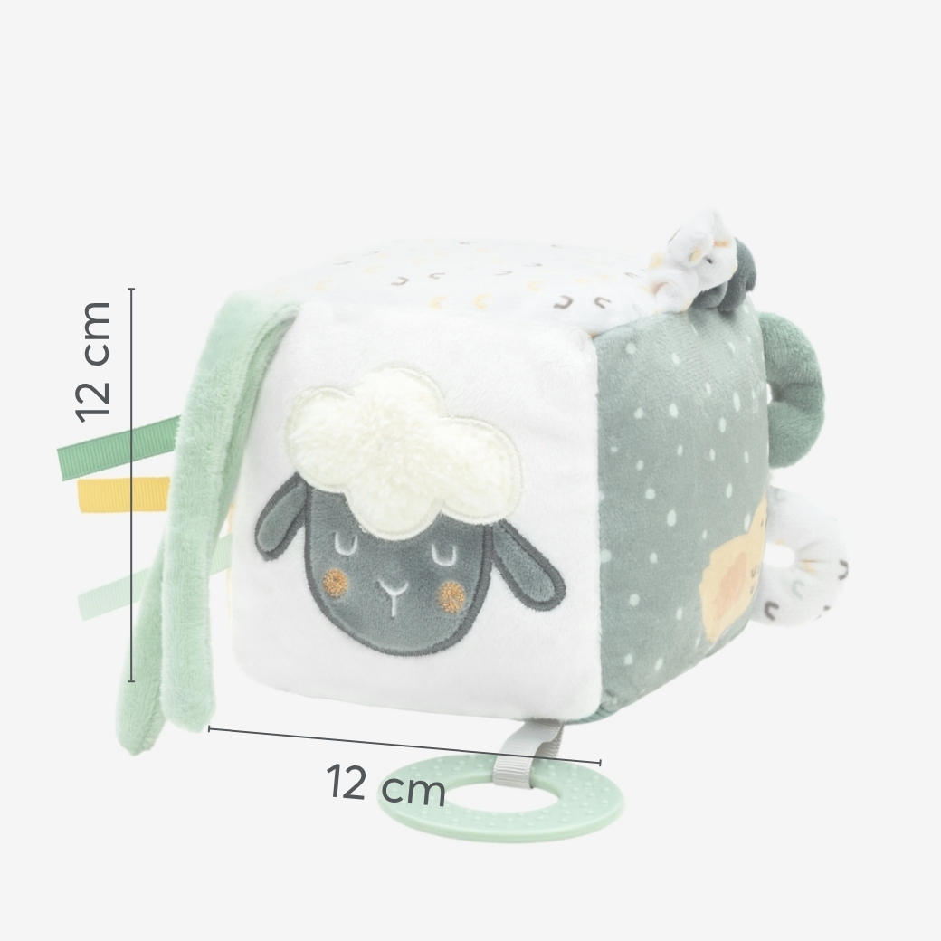 The plush cube SLEEPY SHEEP is the perfect mix of fun, learning, and sensory development, keeping your baby entertained at home or on the go.