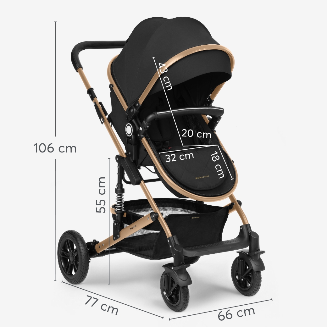 AMAIA comes with i-SIZE car seat (40-87 cm) that meets UN Regulation No. R129/03 standards and features a multi-position ergonomic carry handle, removable canopy, and SoftTouch 3-point harness system. The stroller kit also includes additional accessories to make sure you have everything you need for comfortable and stylish strolls.
