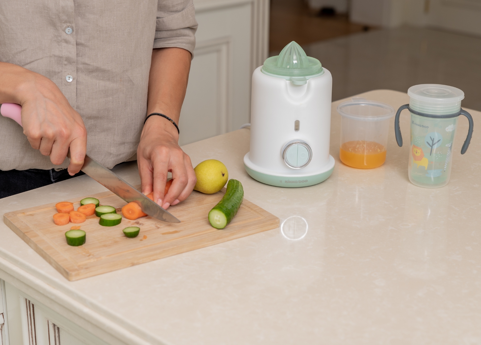 - 3-in-1 Functionality - Serves as a bottle warmer, sterilizer for one bottle, and a juicer, offering multiple uses in one compact unit.