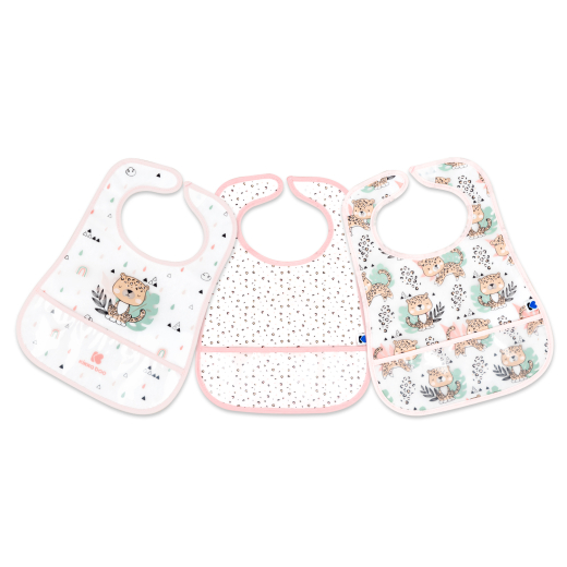 Set de baberos de rizo y EVA con recogemigas 3 uds Savanna Rosa
