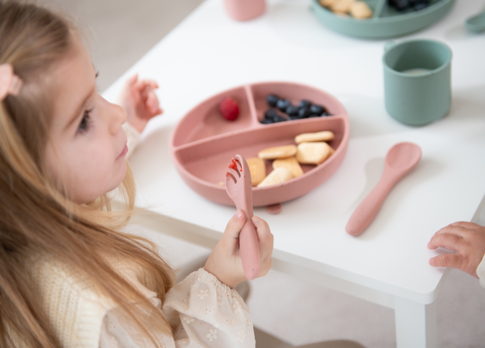 Seguro, práctico y delicado con las encías, el set de tenedor y cuchara de silicona Platinum acompaña a tu bebé en el aprendizaje de comer solo con comodidad y confianza.