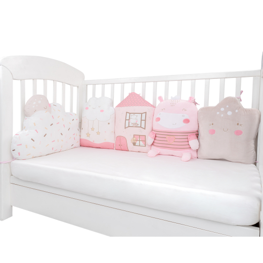 • Strings attached to each pillow ensure easy fixation to the crib;