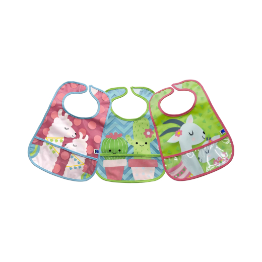Set de baberos de rizo y EVA con recogemigas 3 uds Lama-Cactus-Goat