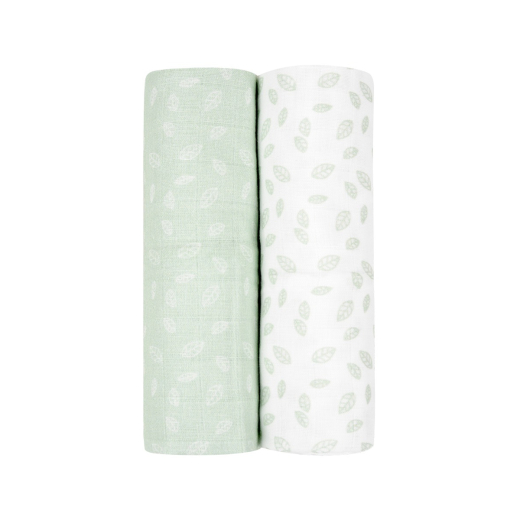 Juego de pañales de muselina 2 uds 80x80 cm Leaves Menta