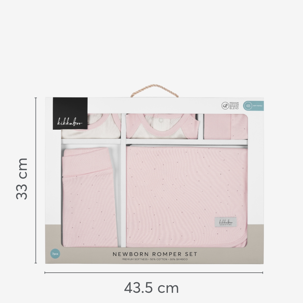 Newborn Romper Set 7 pcs STRIPY FRIENDS is a beautifully curated collection designed to welcome your little one with comfort, warmth, and thoughtful detail from day one. Crafted from soft premium interlock fabric, this complete set combines everyday essentials with a cozy blanket — everything needed for those precious first moments.