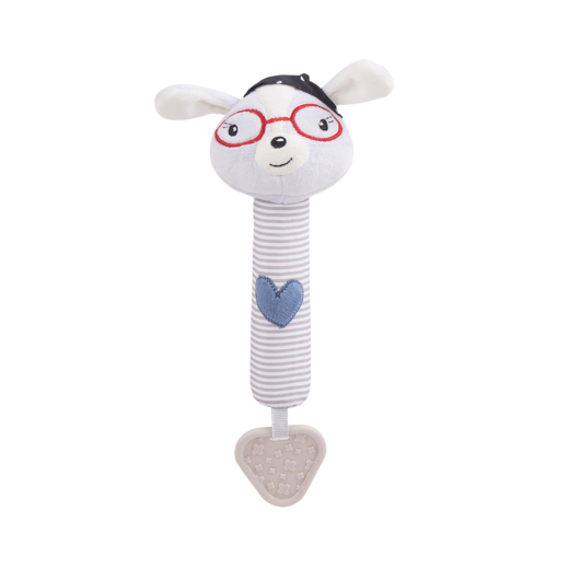 • Soft toy with built-in squeaker and rubber teether;